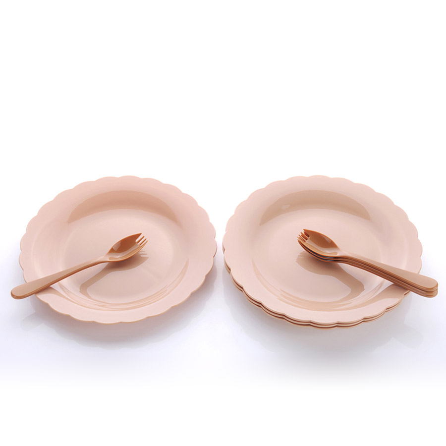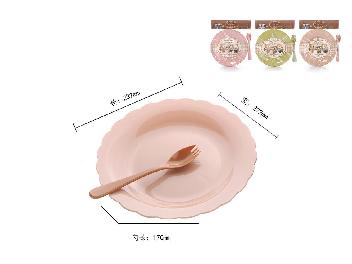 得力熊歐式大號花邊圓形餐盤(4pcs)( 配4pcs叉匙)