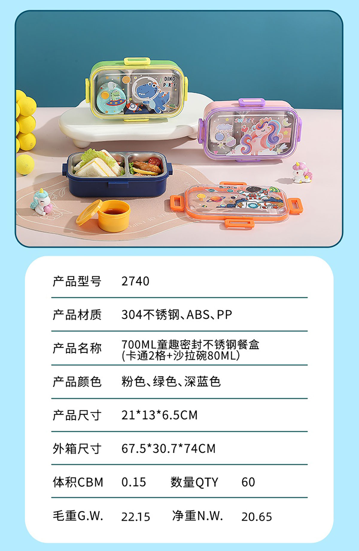 AQX-2740:210*130*65mm/2格+沙拉碗80ml