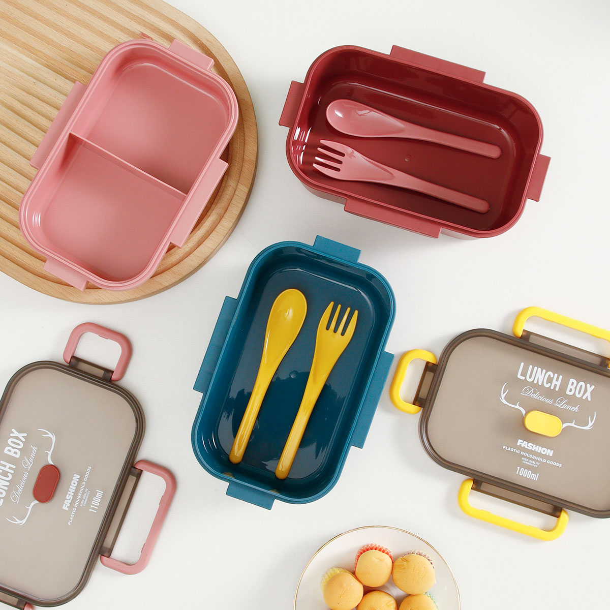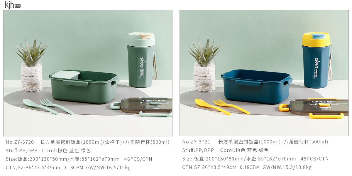長方雙層/單層密封飯盒+圓形/八角隨行杯