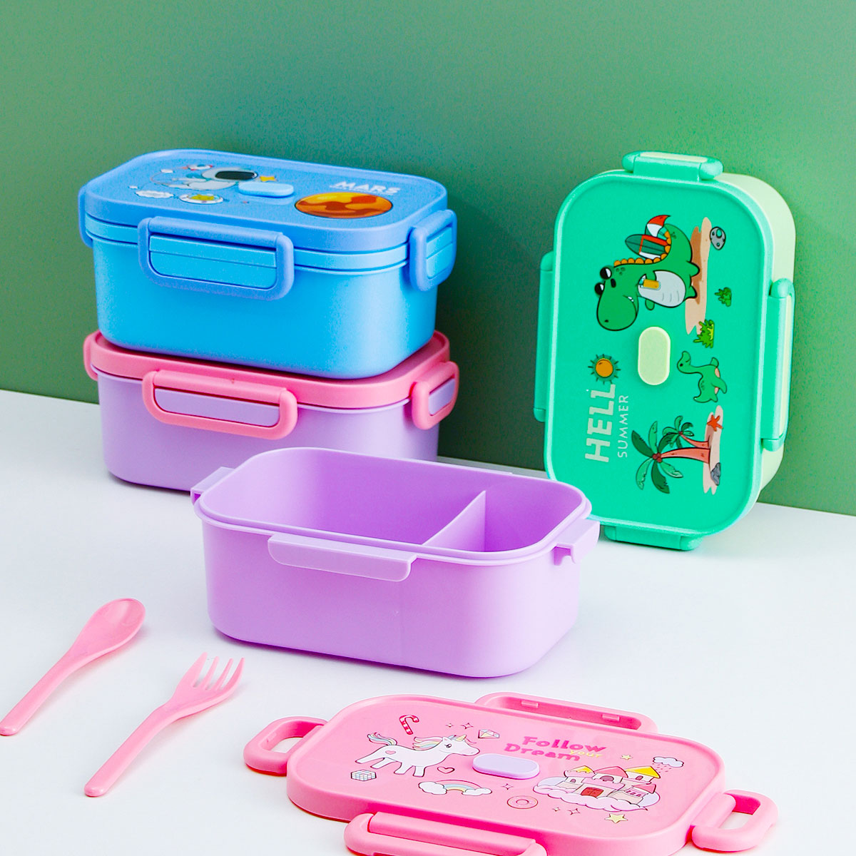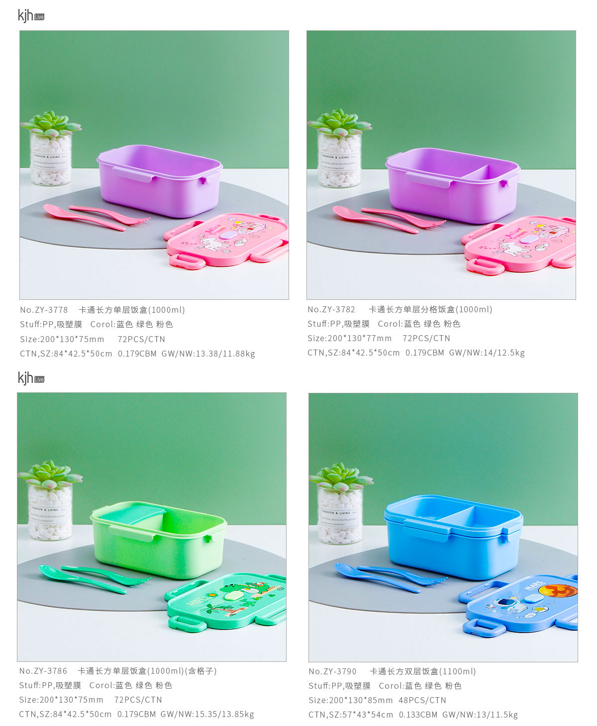 卡通長方單層/單層分格/單層含格子/雙層飯盒