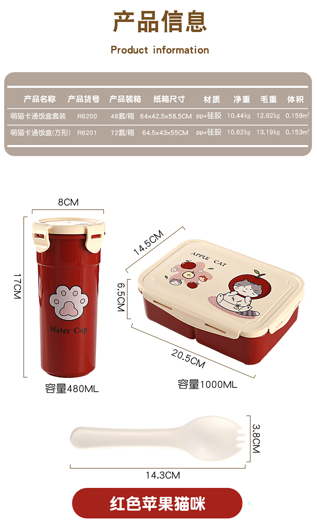 XL-R6200(套裝):205*145*65mm/1000ml 水壺:80*170mm/480ml