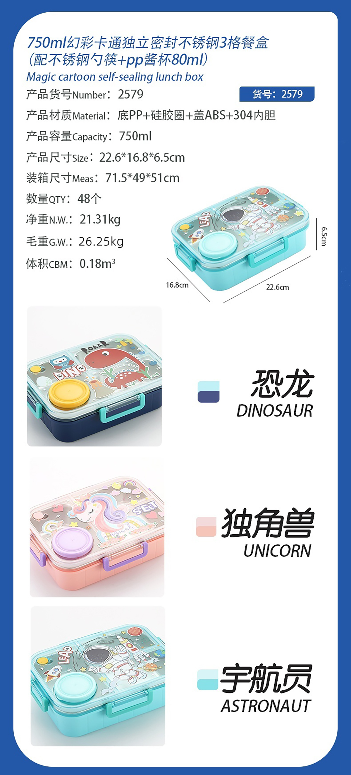 AQX-2579(3格):226*168*65mm/750ml