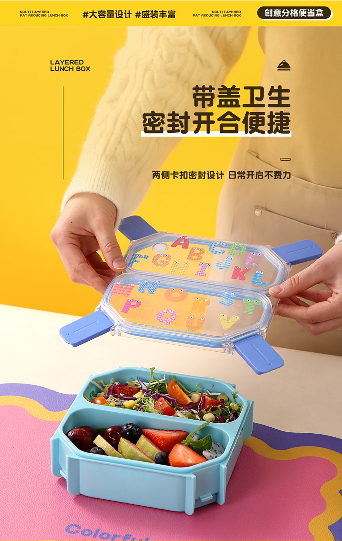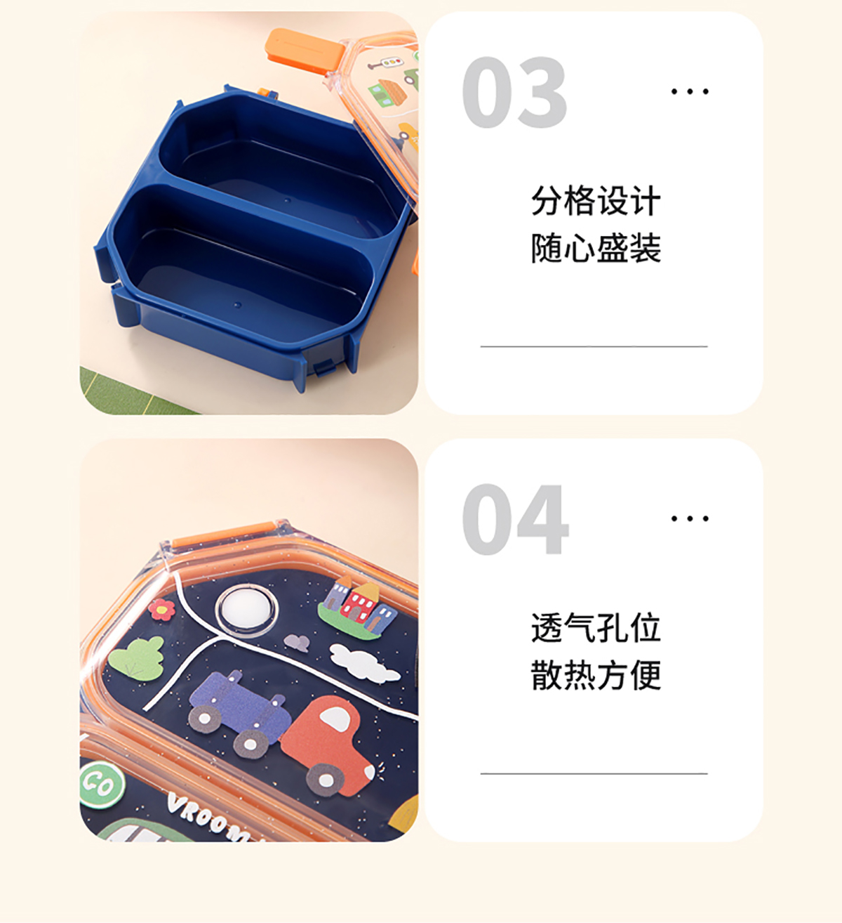 Size: AQX-7181(二格):179*171*62mm/1.05L AQX-7182(三格):179*171*62mm/980ml